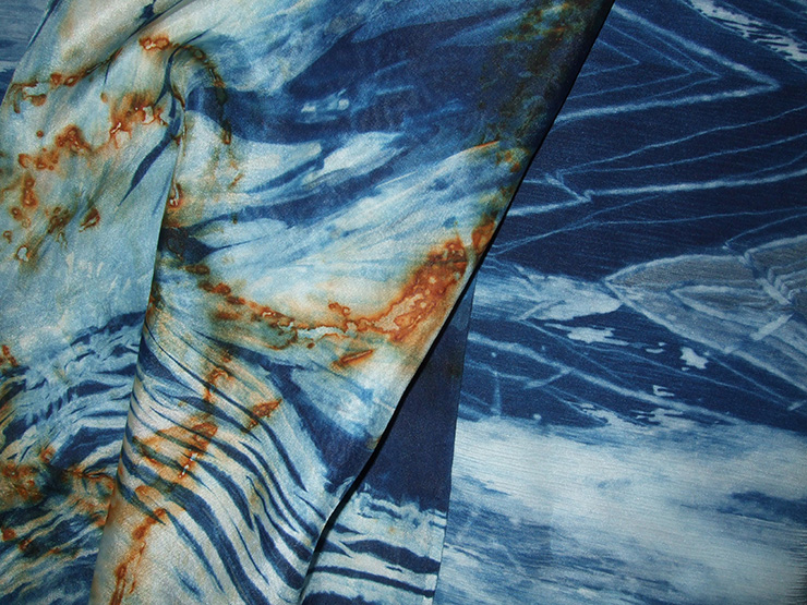 Rust and indigo dyed silk